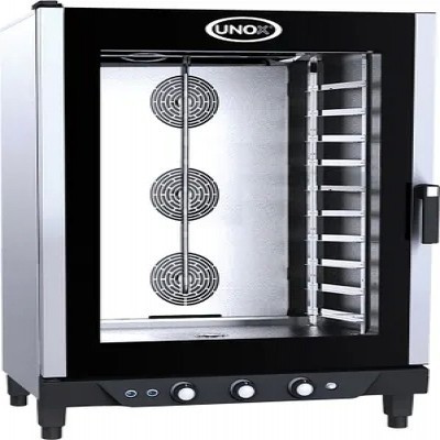 Основные характеристики:Подключение 380 В Количество уровней 10Расстояние между уровнями 80 ммПротивень 600х400 ммУправление механическоеПароувлажнениеПодключение к водеОписаниеКонвекционная печь UNOX XB 893 серии BakerLux предназначена для приготовления различных блюд, выпечки хлебобулочных и кондитерских изделий на предприятиях общественного питания и торговли, в пекарнях и кондитерских. Модель оснащена механическим управлением и подсветкой посредством галогеновых ламп и L-образными направляющими. Съемное внутреннее стекло облегчают чистку и обеспечивают максимальную гигиену. Камера с закругленными углами выполнена из нержавеющей стали AISI 304, направляющие - из нержавеющей стали, дверные петли выполнены из высокопрочного самосмазывающегося технополимера, дверной замок - из углеродного волокна.Режимы выпечки:Конвекция: от 30 до 260 °CКонвекция + пар: от 48 до 260 °CПредварительный разогрев (максимальная температура): 260 °СРаспределение воздуха в камере:Технология AIR.Plus:Вентиляторы с реверсивным движением2 скорости воздушных потоковУправление климатом в камере:Технология DRY.Plus: быстрое изъятие влажности из камеры, устанавливаемое операторомТехнология STEAM.Maxi™: ручная подача влажности в камеруТеплоизоляция и безопасность:Технология Protek.SAFE™: максимальная эффективность и безопасность при работе (внешняя поверхность печи и стекла двери не нагреваются)Запатентованная дверь:Блокировка произвольного открытия дверцы в позициях 60°-120°-180°Изменение направления открытия двериВспомогательные функции:Визуализация остаточного времени выпечкиНепрерывная работа печи "INF"Технические детали:Панель управления ManualОграничитель температуры для безопасностиНебольшой вес - надежная конструкция, благодаря применению инновационных материалов